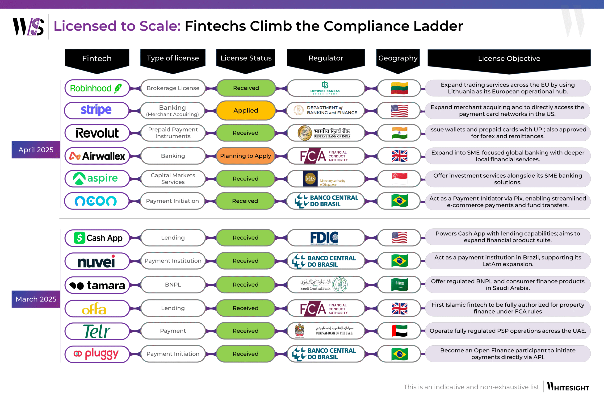 The global fintech industry is maturing, and its next phase of growth is being powered not just by tech innovation, but by regulatory ambition. In the race to become full-stack fintech powerhouses, more and more players are climbing what we at WhiteSight like to call “the compliance ladder.” But getting licensed is more than just ticking a regulatory checkbox; it’s a calculated move that often reveals the strategic DNA of the fintech itself.