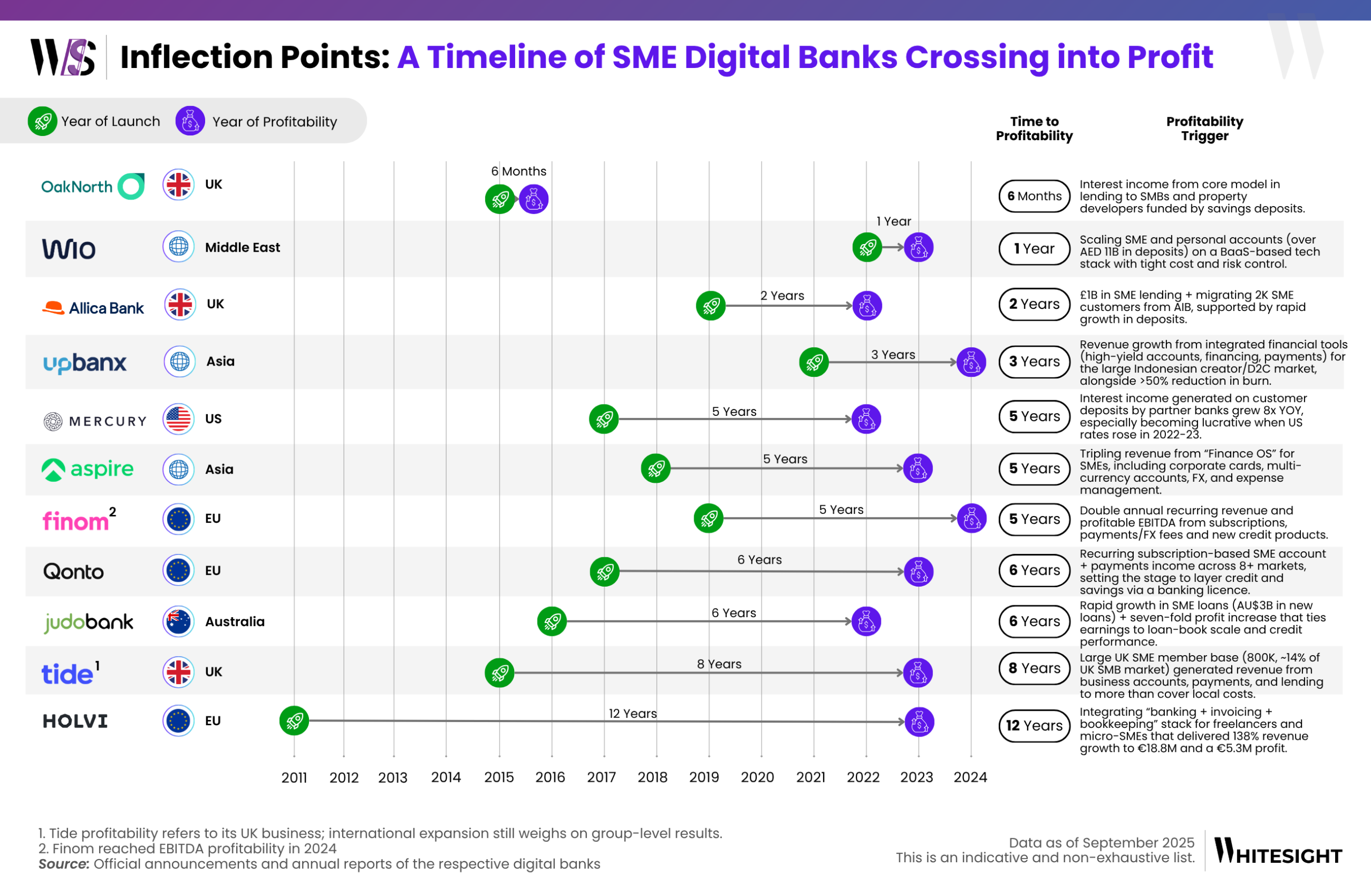 For this story, it’s interesting that some of these profit paths are now showing up in SME-focused digital banks too, because SMEs generate high-frequency financial activity (payments, balances, FX, cards), and because business models around lending and deposit economics can scale quickly.